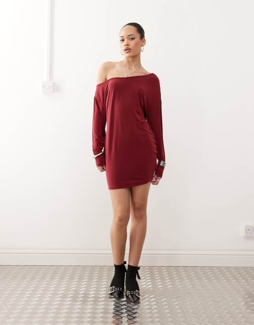Motel shelisa off-shoulder slouchy mini dress in burgundy