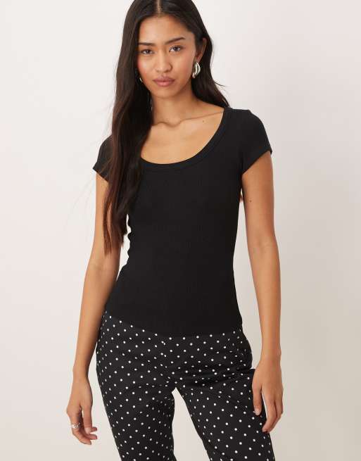 Motel Sumala ribbed scoop neck short sleeve t-shirt in black
