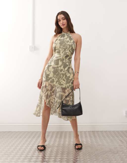 Motel tanta halter neck blurred floral print midaxi dress in yellow