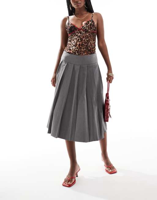 Motel trisma pleated midi skirt in grey