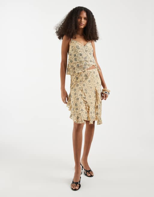 Motel winding floral floaty co-ord in ivy pale yellow