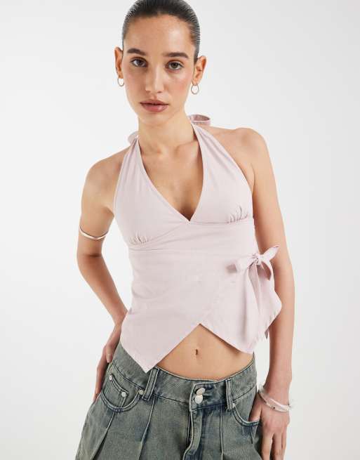 Motel Yung halter wrap twill top in sakura pink