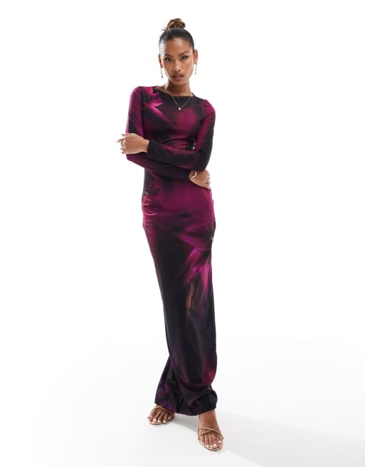 Murci exclusive slash neck maxi dress in purple floral