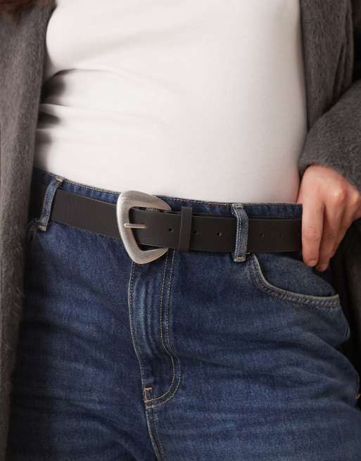 My Accessories Curve sculptural buckle belt in black and brushed silver
