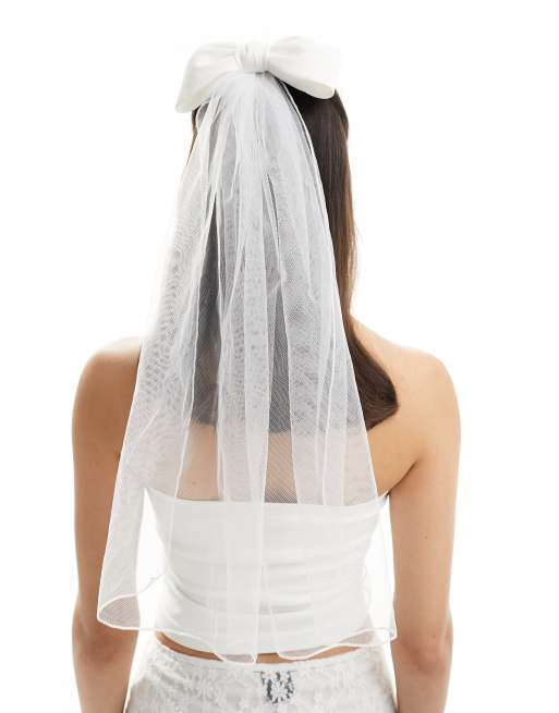 My Accessories bridal hair bow with veil in white