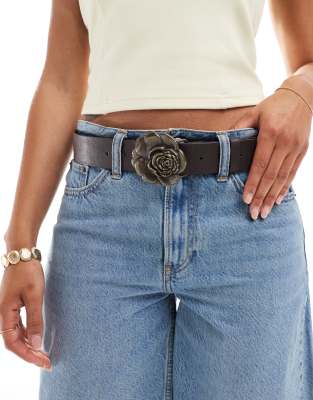 My Accessories chunky rose buckle belt in brown and bronze