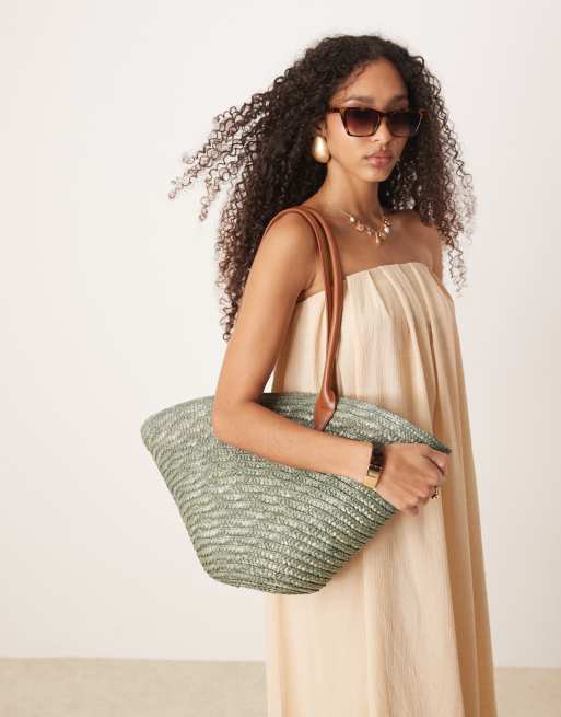 My Accessories large straw tote bag with contrast strap in olive green