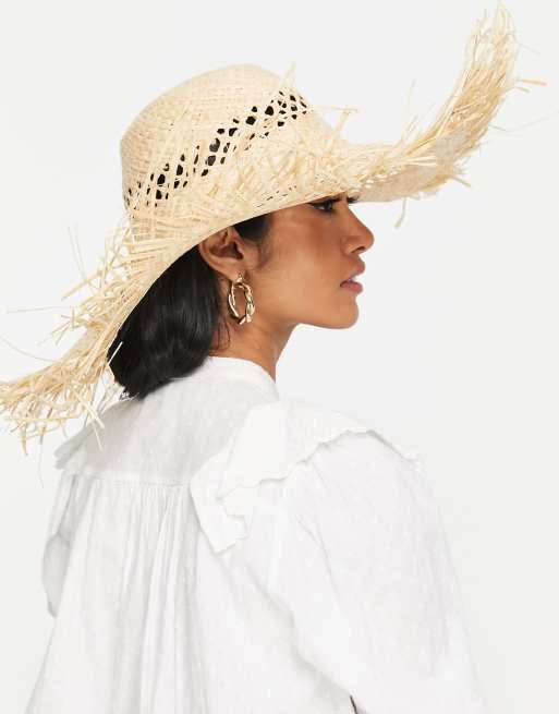 My Accessories London adjustable oversized straw sun hat with frayed edge