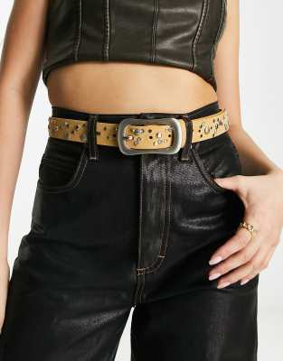 My Accessories London belt in beige suede with silver studs