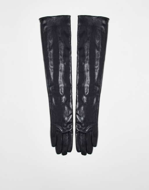 My Accessories London PU long gloves in black