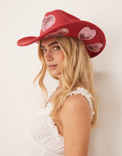 My Accessories sequin patch festival cowboy hat in red