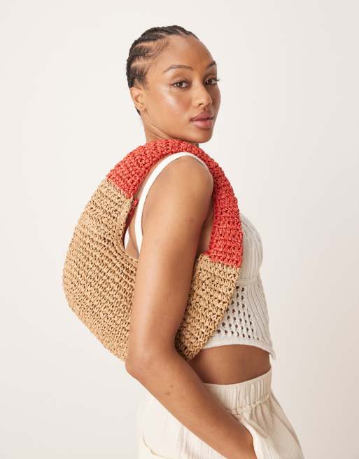 My Accessories straw grab bag in red and natural beige