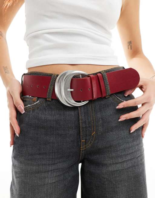 My Accessories wide belt with oversized buckle in burgundy