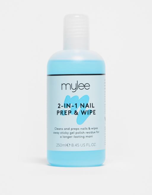 Once your gel mani is complete, dampen a lint free wipe with Mylee Prep & Polish and remove the sticky residue from each nail