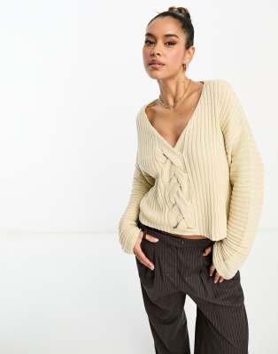 NA-KD braided knitted sweater in beige