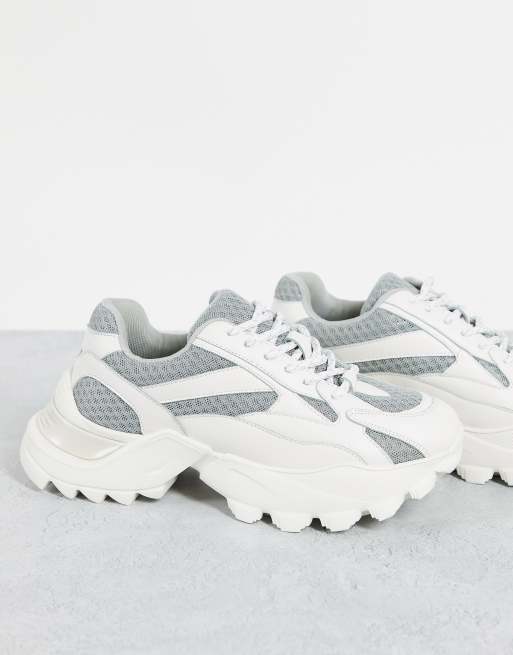 NA-KD curved trekking sole chunky trainers in white/grey