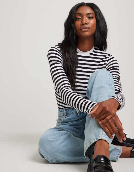 NA-KD long sleeve fitted t-shirt in black white stripe