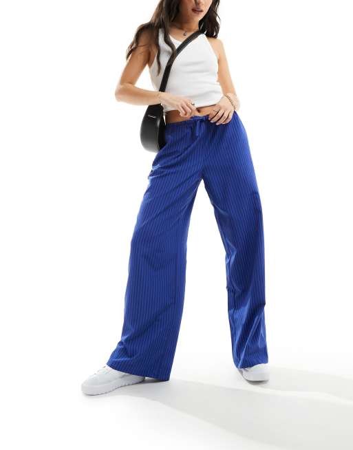 NA-KD mid waist trouser in navy stripe