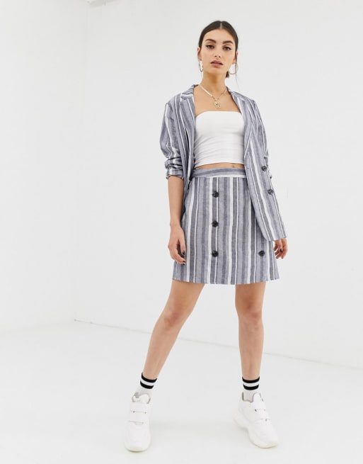 Na-kd stripe blazer & skirt in blue co-ord