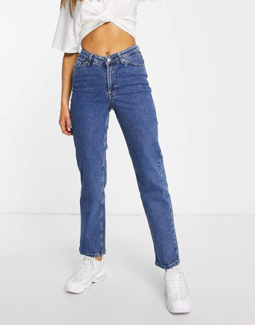 NA-KD v-shaped waist straight denim jeans in mid blue