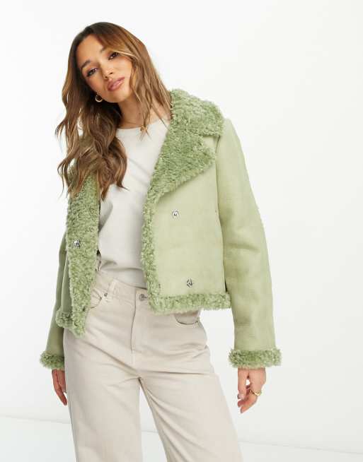 NA-KD x Stephsa faux suede jacket in green