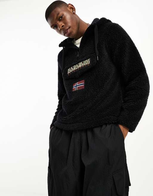Napapijri Burgee sherpa 1/4 zip hooded fleece in black
