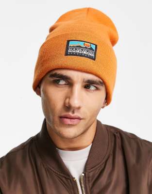 Napapijri F-Mountain patch logo beanie in orange