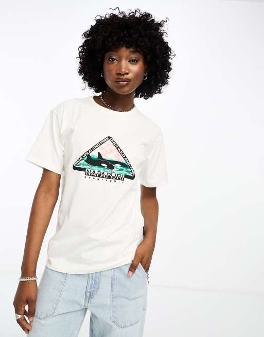 Napapijri Montalva chest print t-shirt in off white