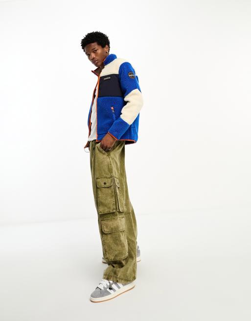 Napapijri Yupik zip up fleece jacket with logo patches in blue and white