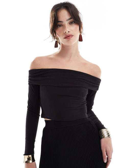 Narrated Bardot top in black
