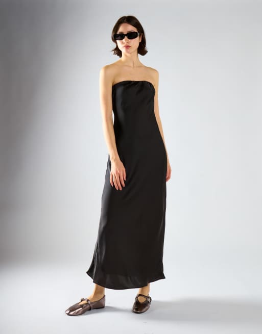 Narrated Bias-cut strapless midaxi-dress in black satin