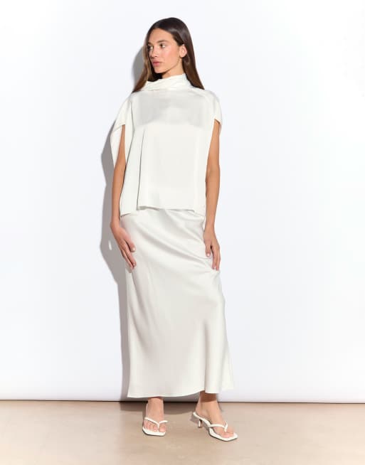 Narrated Midi skirt in white satin