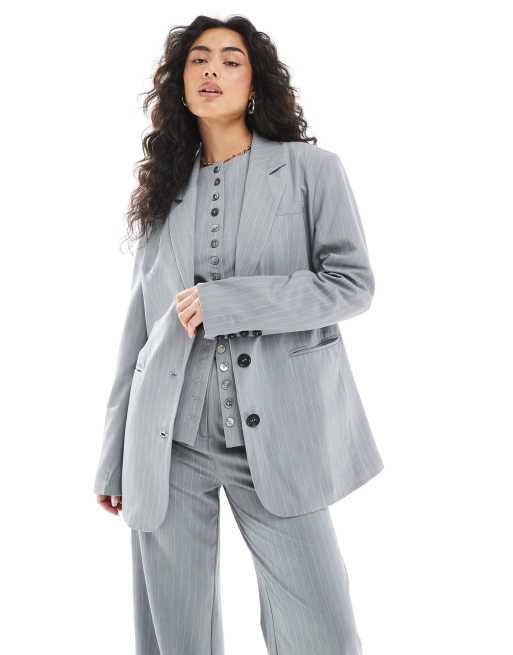 Narrated Oversized blazer in grey pinstripe