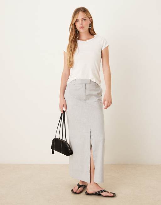 Narrated Pencil Maxi Skirts in light grey pinstripe