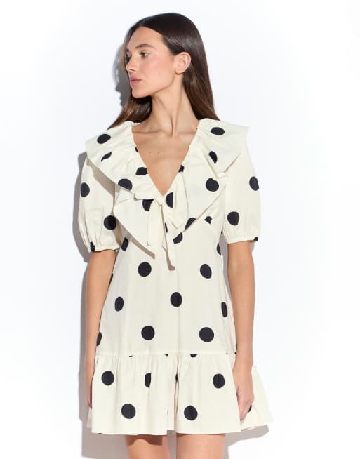 Narrated Ruffle mini dress with puff sleeves in cream spot