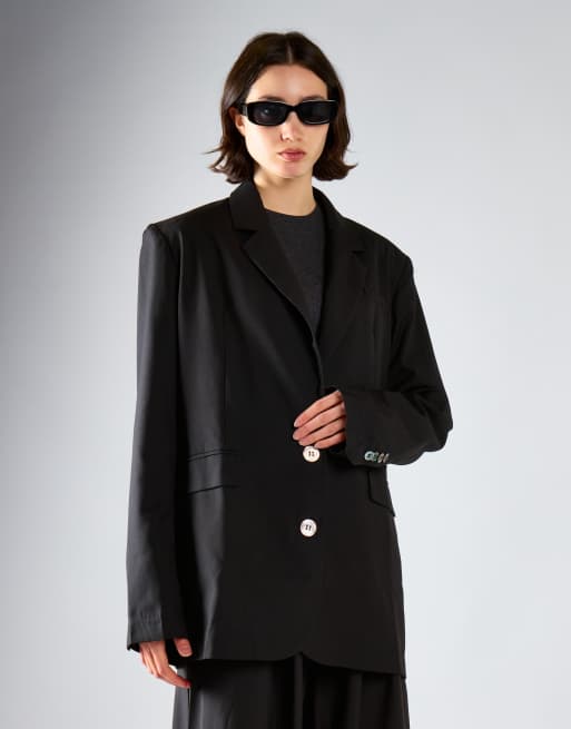 Narrated Single breast oversized-blazer in black