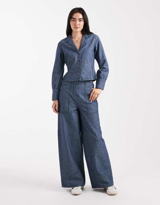 Native Youth jacquard stripe wide leg jean in blue