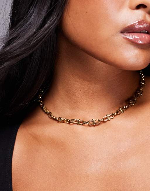 Neck On The Line interlocking chain necklace in gold plated