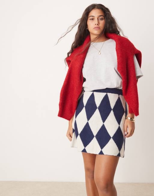Neon Rose argyle knitted mini skirt in navy