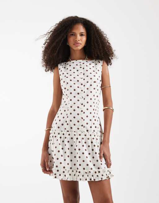 Neon Rose button up mini dress in cream polka dot