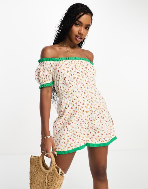 Neon Rose ditsy print bandeau bow back playsuit in multi