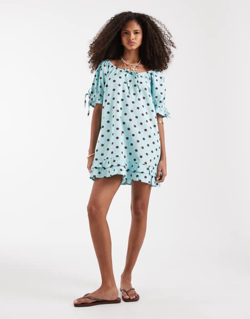 Neon Rose smock dress in sea moss polka dot