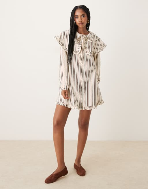 Neon Rose striped oversized collar mini smock dress in olive and brown