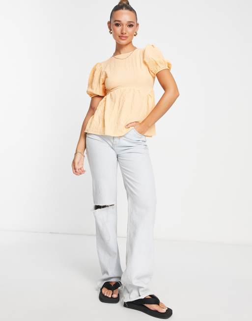 Neon Rose tie back smock top in textured apricot