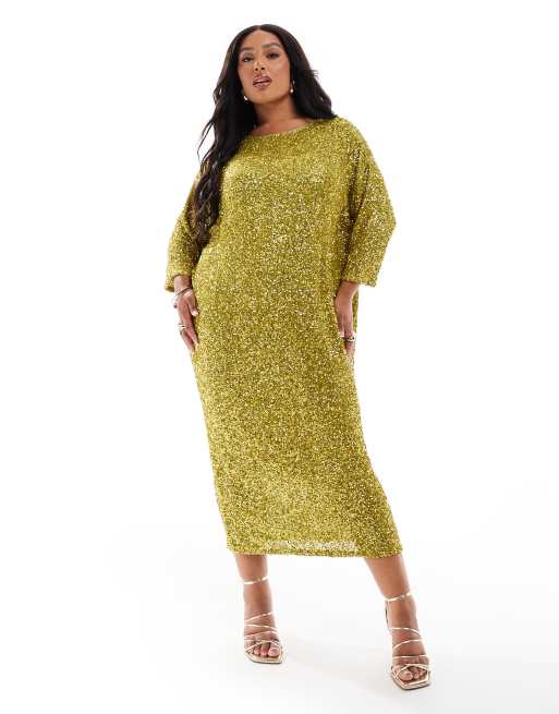 Never Fully Dressed Plus Jem maxi dress in olive sequin