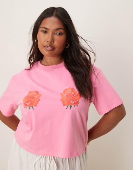 Never Fully Dressed Plus rose print baby tee in pink and red