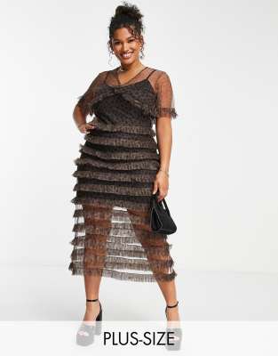 Never Fully Dressed Plus tiered ruffle midaxi dress in leopard print