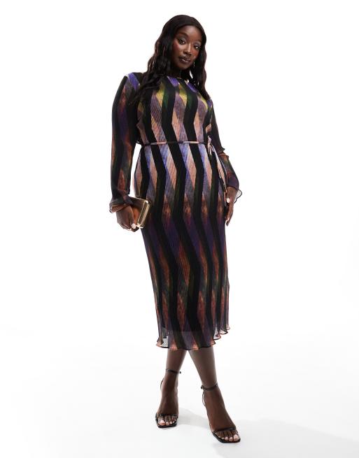 Never Fully Dressed Plus zig zag plisse maxi dress in purple