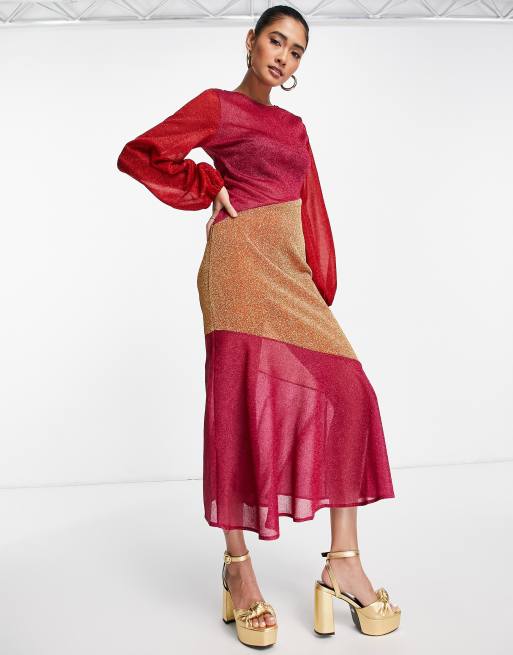 Never Fully Dressed balloon sleeve maxi dress in contrast panels