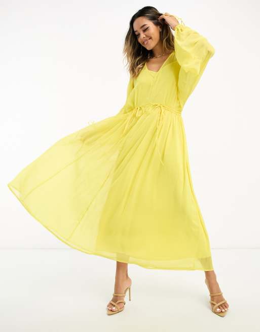 Never Fully Dressed balloon sleeve tie maxi dress in yellow